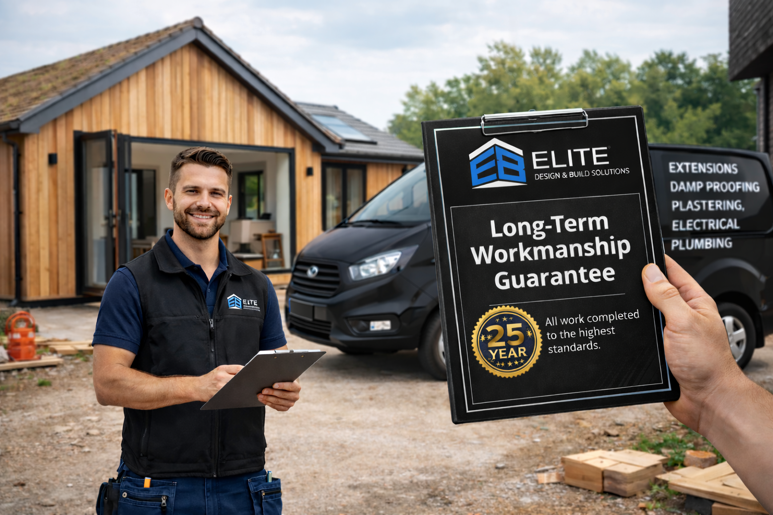 Elite Design and Build Solutions delivers extensions and damp solutions done right. We offer root-cause diagnostics (BS 5250), eco materials, transparent fixed pricing, and a single dedicated team.